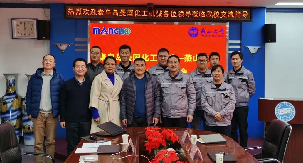 3月16日上午,秦皇島曼國(guó)化工機(jī)械有限公司(以下簡(jiǎn)稱“曼國(guó)機(jī)械”)與燕山大學(xué)孔祥東教授團(tuán)隊(duì)在燕山大學(xué)東校區(qū)機(jī)械館301舉辦了校企合作交流會(huì)。曼國(guó)機(jī)械總經(jīng)理孫永常、常務(wù)副總翟中印、副總馬志國(guó)、副總黃斌、副總孟令儉、副總鄒博禹、總經(jīng)理助理程華偉一行7人參會(huì),燕山大學(xué)孔祥東教授、姚靜教授、艾超教授及部分師生代表參加了會(huì)議。